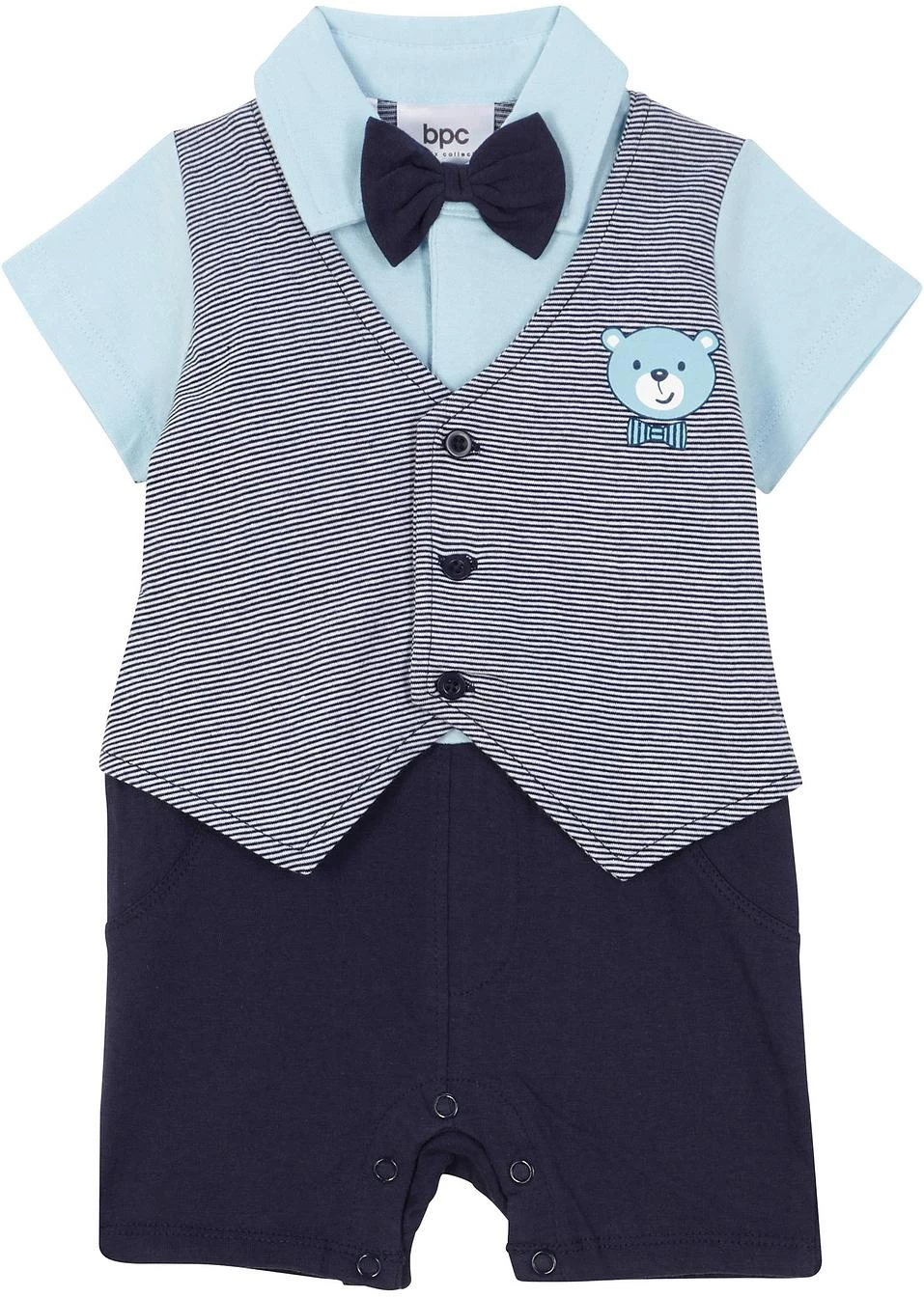 Adorable combinaison pour bébé style costume avec imprimé ourson mignon. Fermeture sur l’entrejambe.