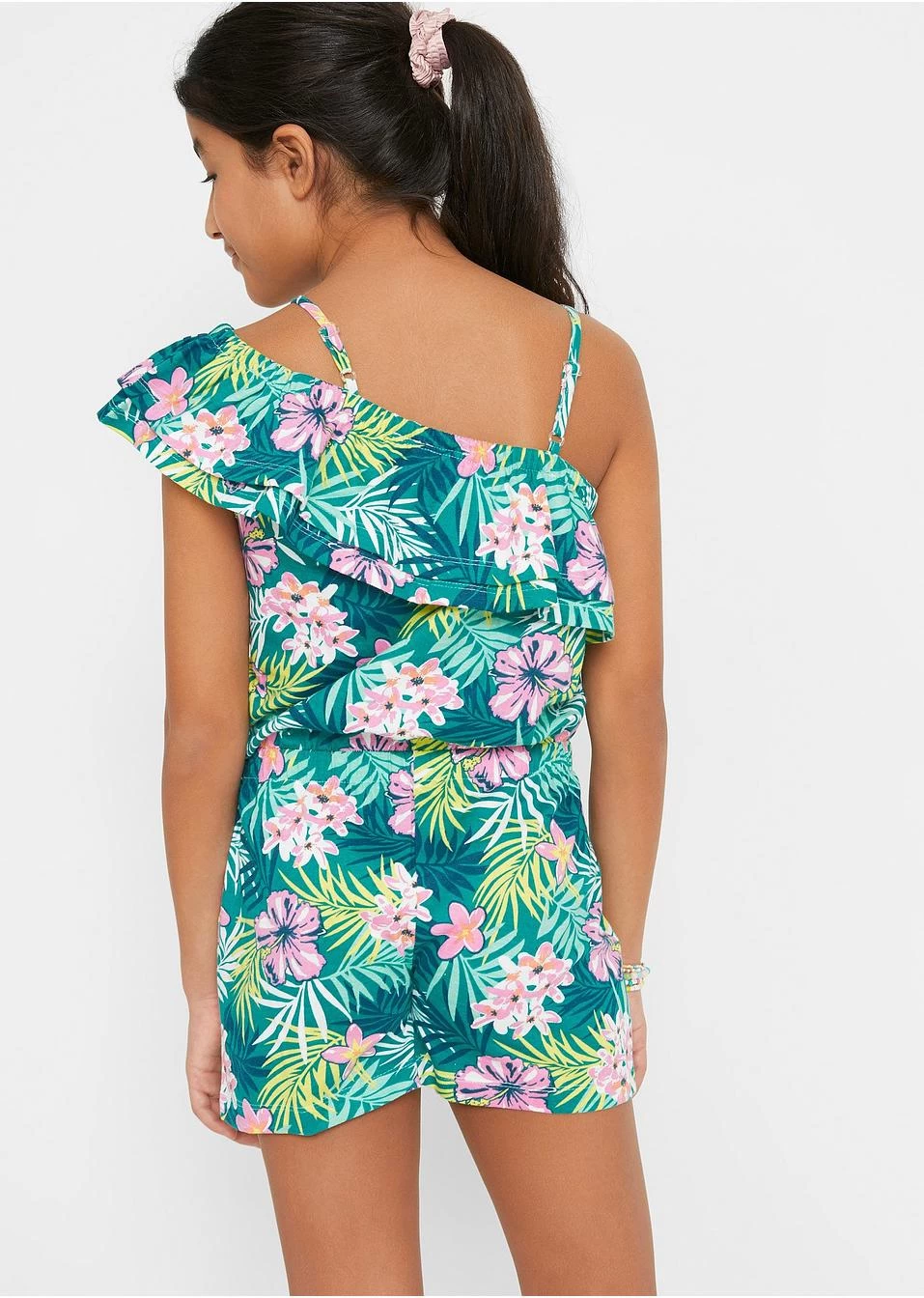 Magnifique combishort pour fille à imprimé floral tendance. Bretelles réglables pour un ajustement optimal. Volant fantaisie au décolleté. Élastique coulissé confortable à la taille.