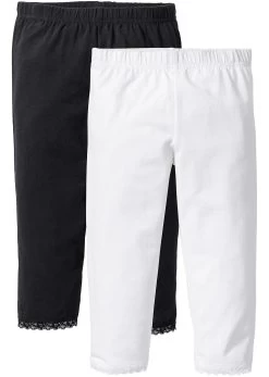 Lot de 2 jolis leggings corsaire avec dentelle fine en bas de jambes, tour de taille confortable avec élastique coulissé pour un ajustement agréable.