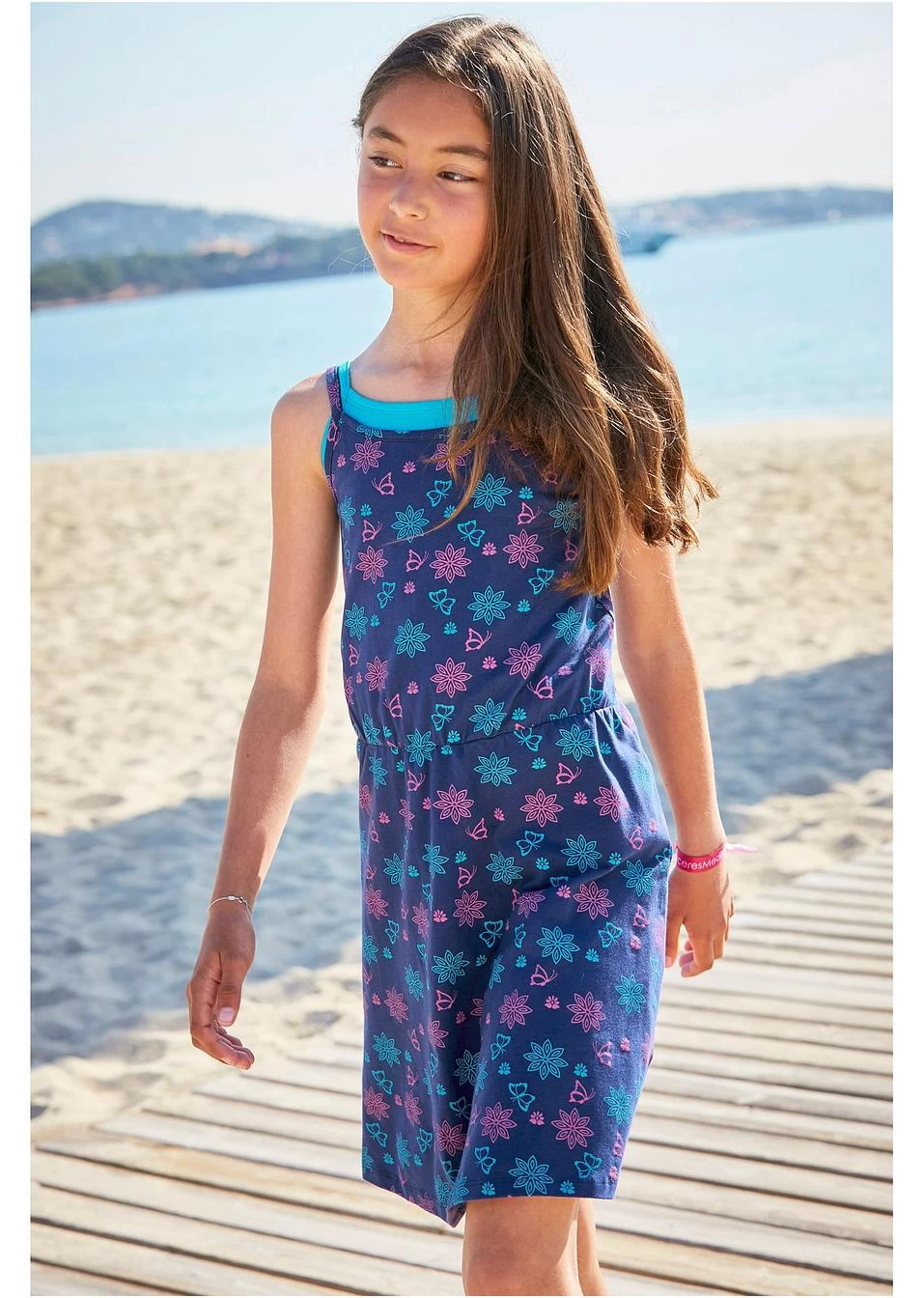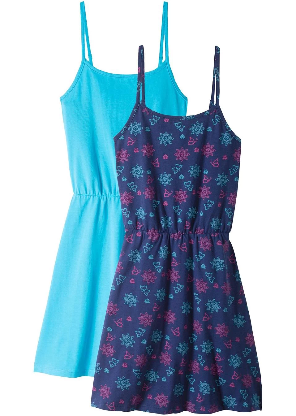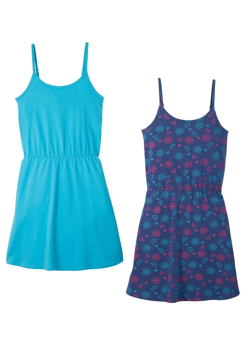 Cette petite robe d’été pour fille est proposée en lot pratique de 2. Un superbe basique pour la garde-robe estivale, idéal aussi pour la valise des vacances. Avec élastique coulissé à la taille et fines bretelles réglables – un look passe-partout !