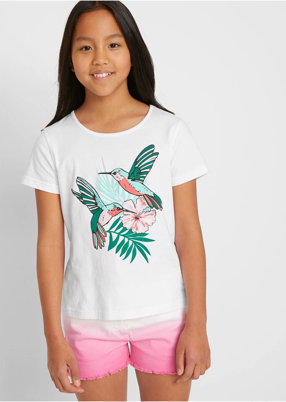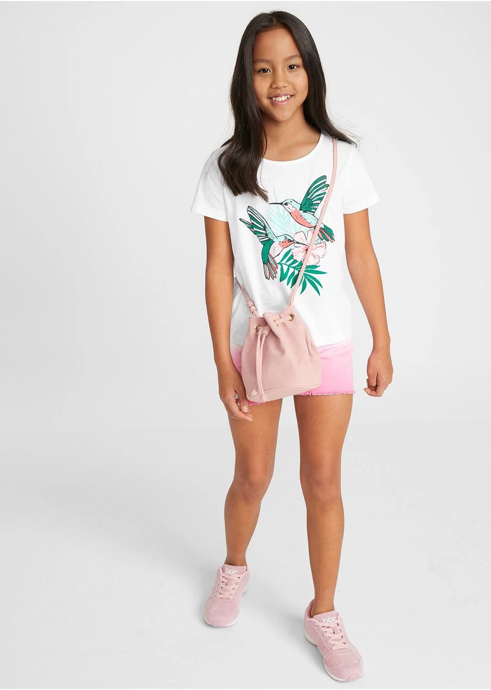 Lot pratique de 2 T-shirts pour filles, avec manches courtes et col rond. Le lot comprend un T-shirt uni et un T-shirt agrémenté d’un joli motif imprimé.
