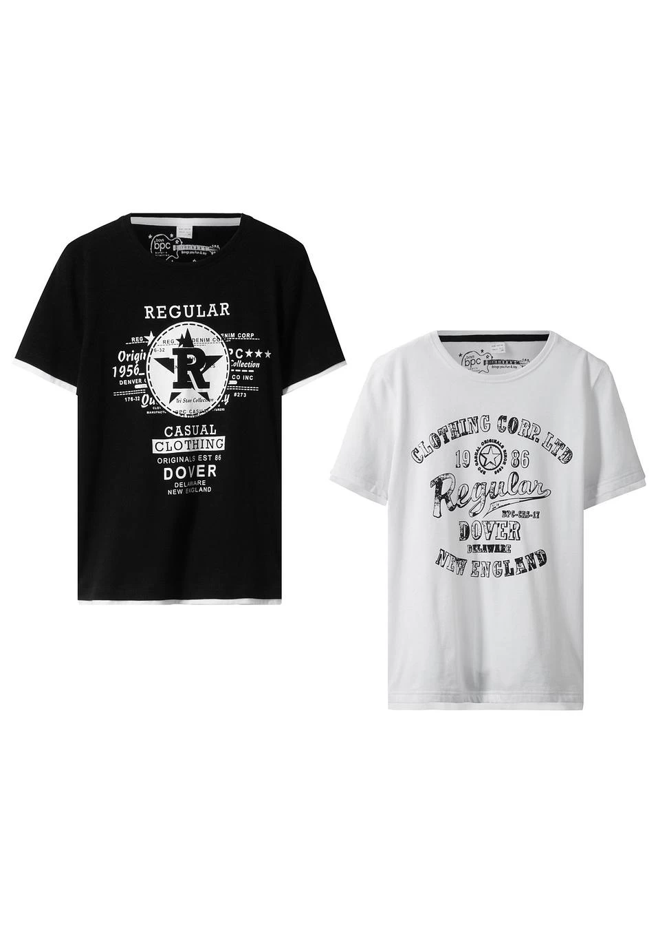 T-shirts tendance en lot pratique de 2 pour les garçons avec deux différents coloris et un imprimé cool sur le devant. Parfait avec un jean et des baskets !