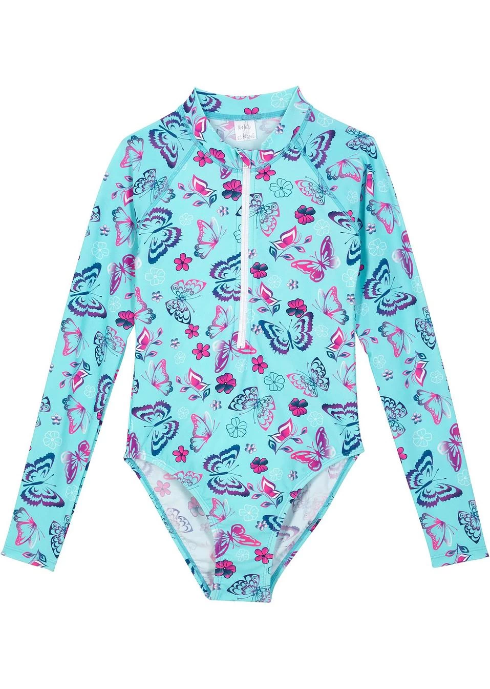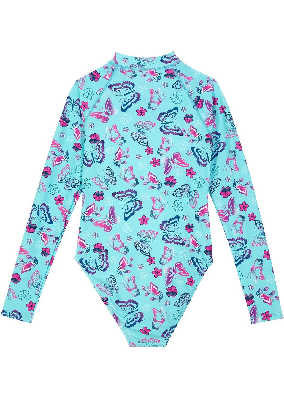 Maillot 1 pièce à manches longues avec superbe imprimé et protection UV