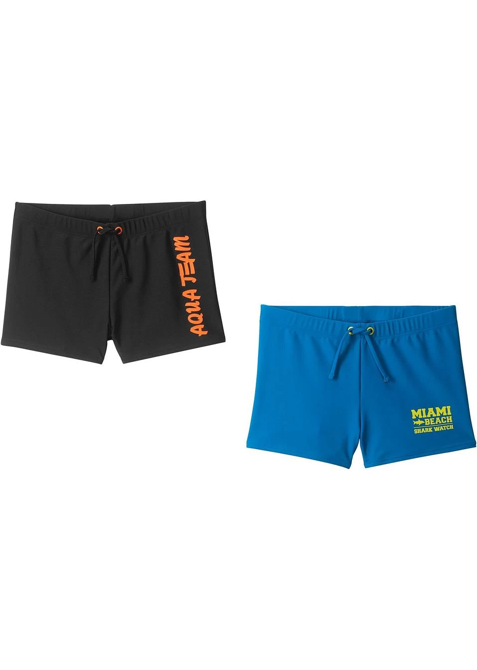 Lot pratique de 2 shorts de bain modernes pour garçons avec imprimé cool sur le cÎté et cordon.