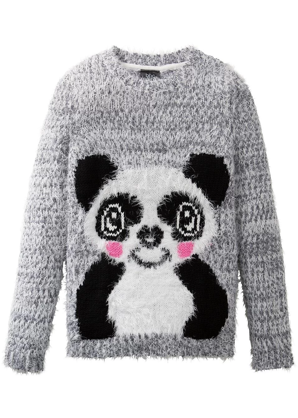 En fil duveteux texturé avec motif panda tricoté. Ce pull tout doux et original pour filles vous apporte chaleur et réconfort pour la saison froide.