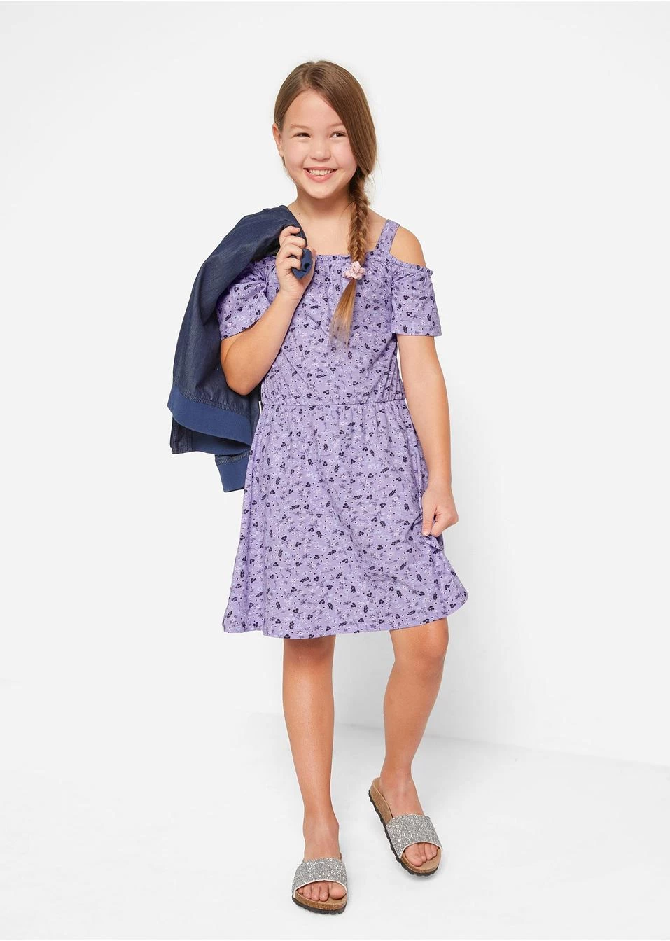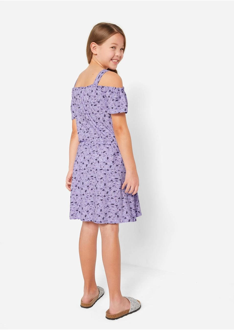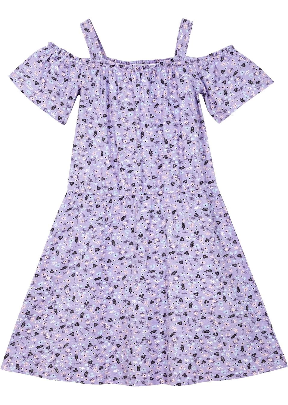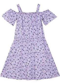 Magnifique petite robe avec un adorable imprimé petites fleurs. L’encolure Carmen avec bretelles finalise le look adorable.