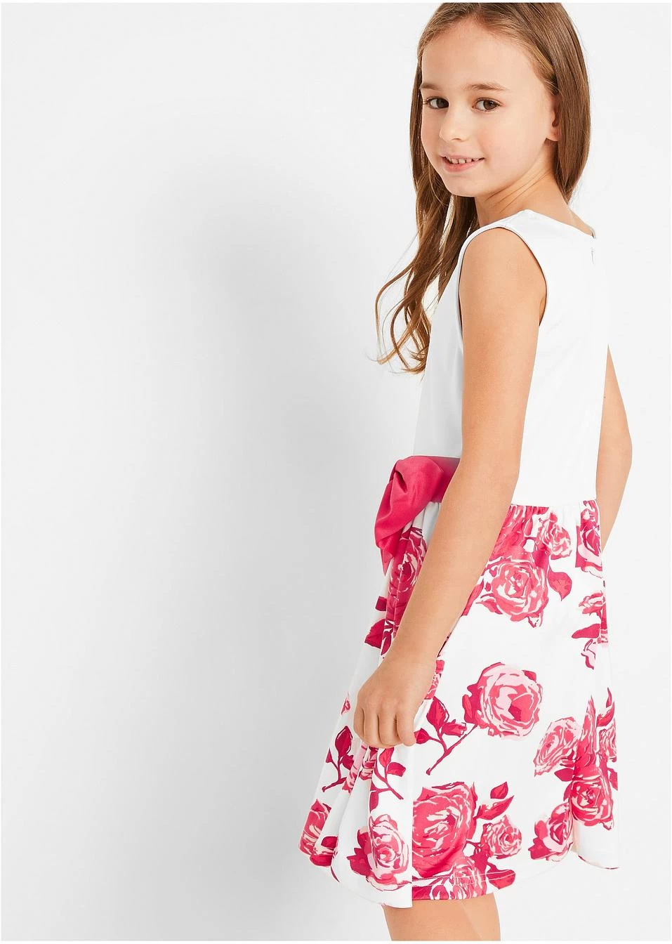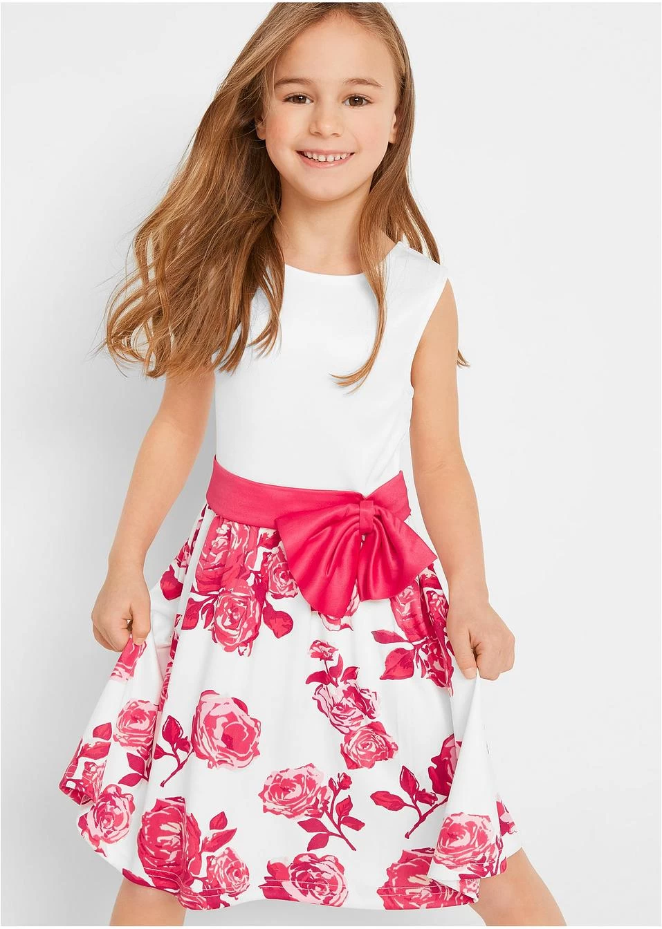 Magnifique robe de fête pour fille agrémentée d’un motif floral sur la jupe. Le gros nœud à la taille attire l’œil !