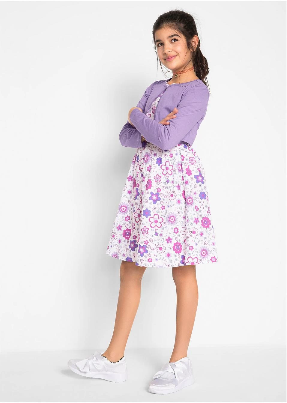 Adorable ensemble comprenant une robe imprimée, un boléro à manches longues et une ceinture