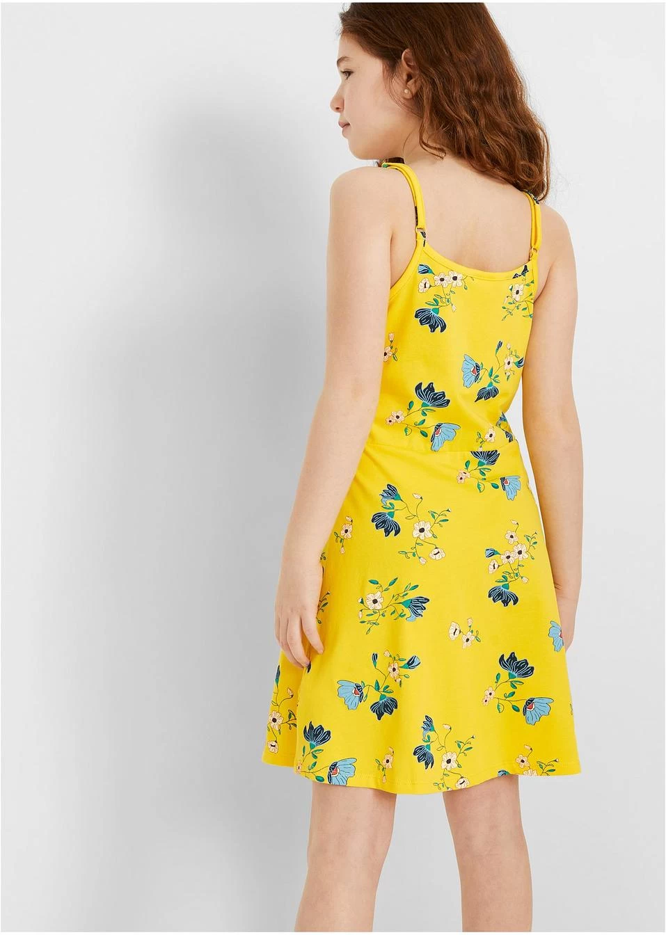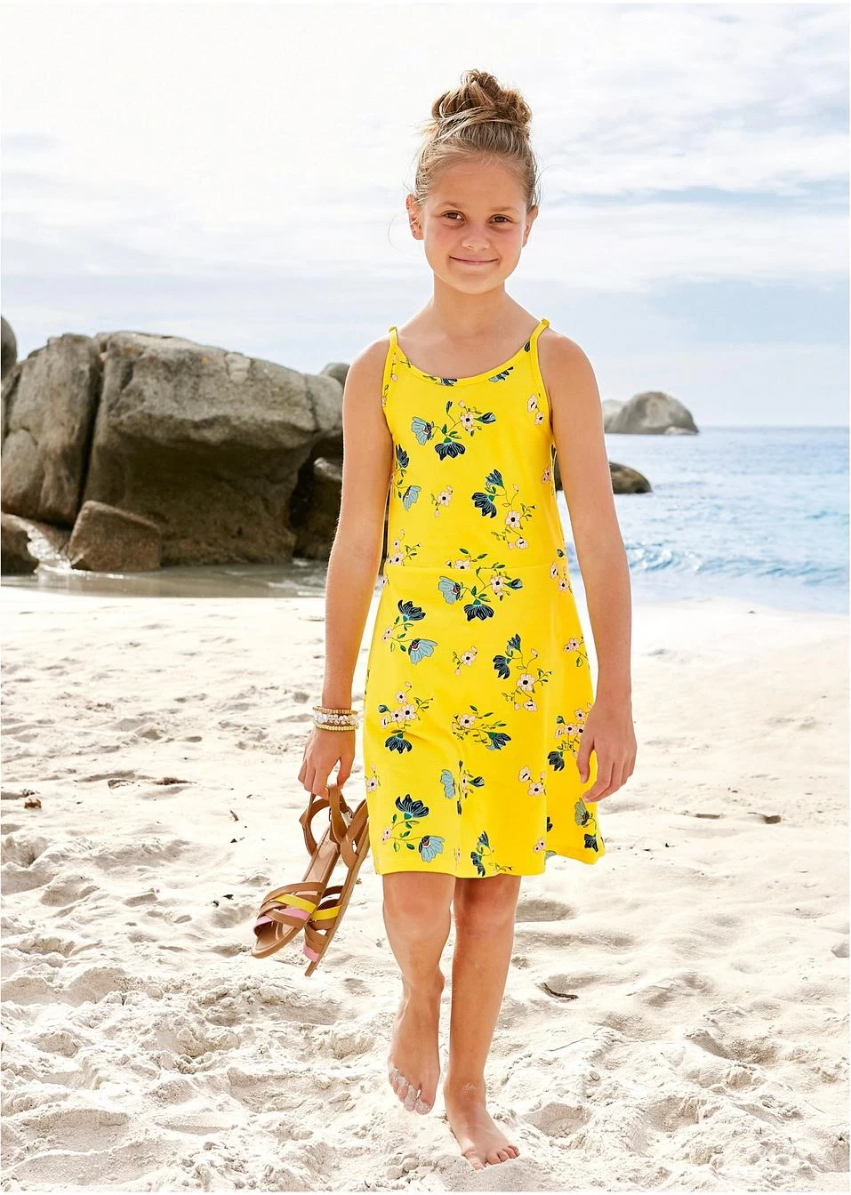 Adorable robe pour fille à bretelles réglables, haut près du corps et partie jupe ample dansante. Son joli motif est parfait pour les beaux jours !