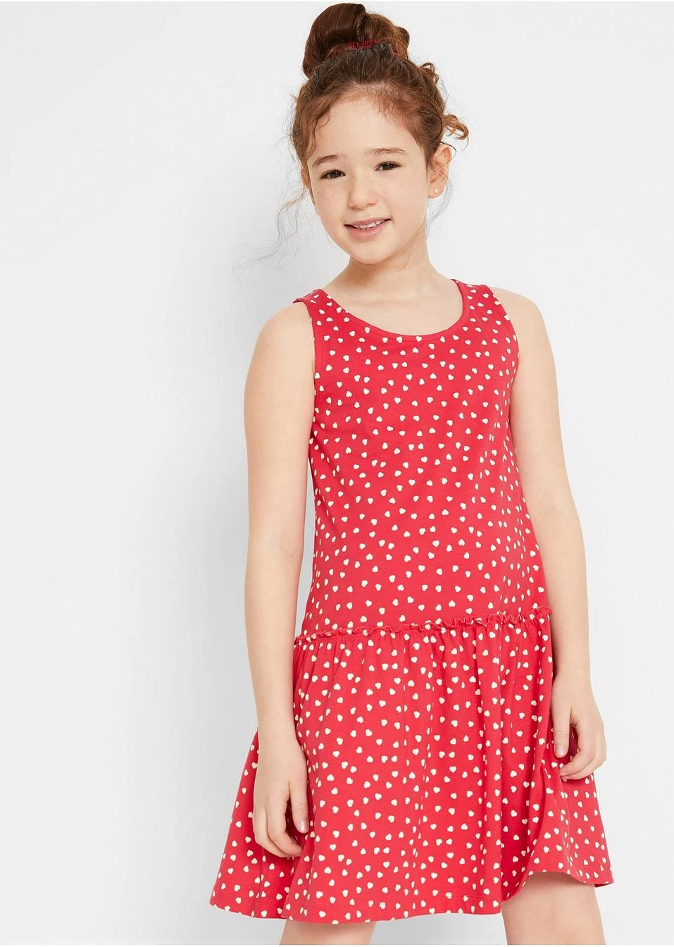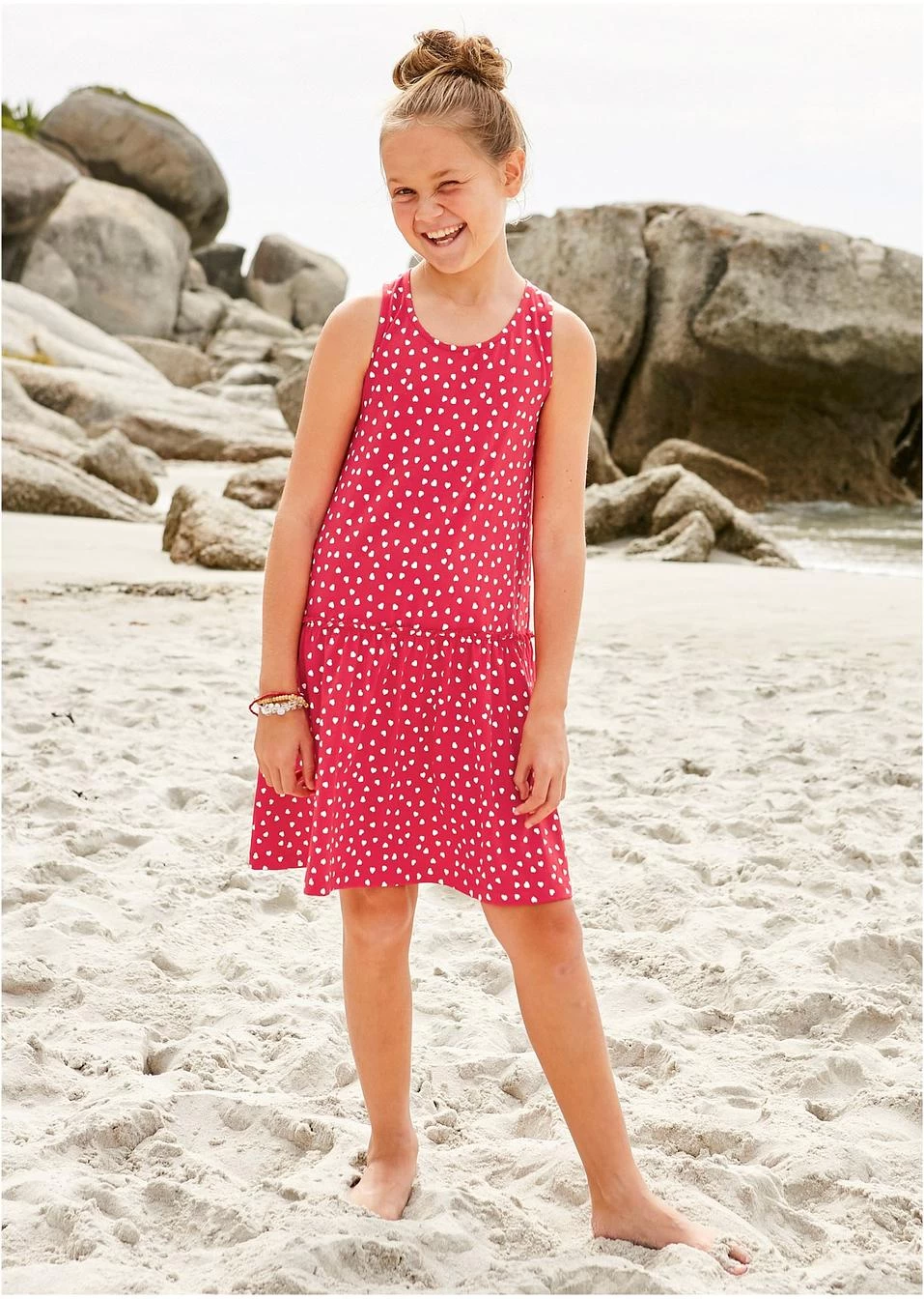 Adorable robe pour fille à imprimé pois mode. Col rond, sans manches.