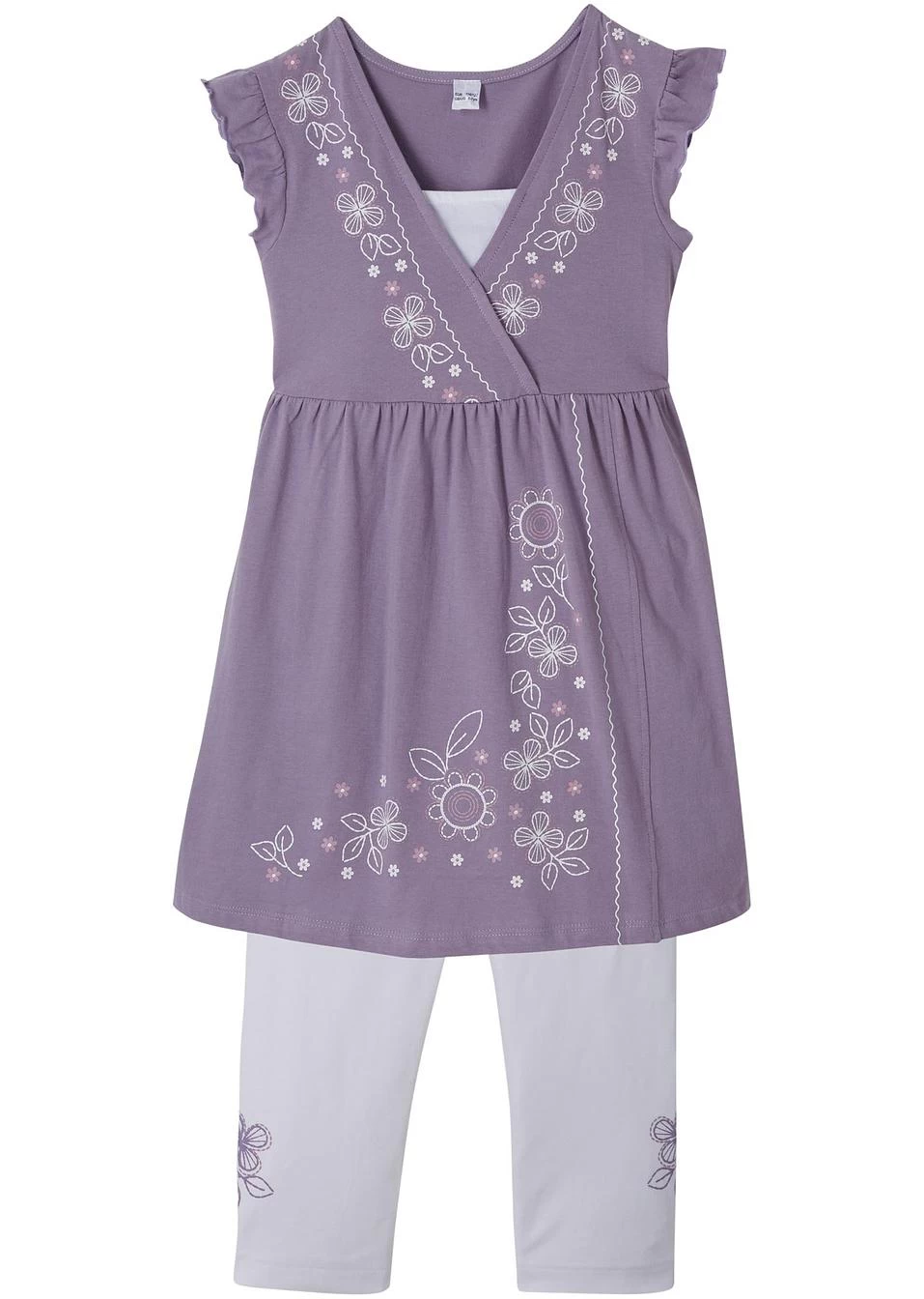 Ensemble 2 pièces pour fille comprenant une robe et un legging 3/4. Robe style portefeuille à imprimé floral. Legging également orné d’un petit imprimé sur la jambe.