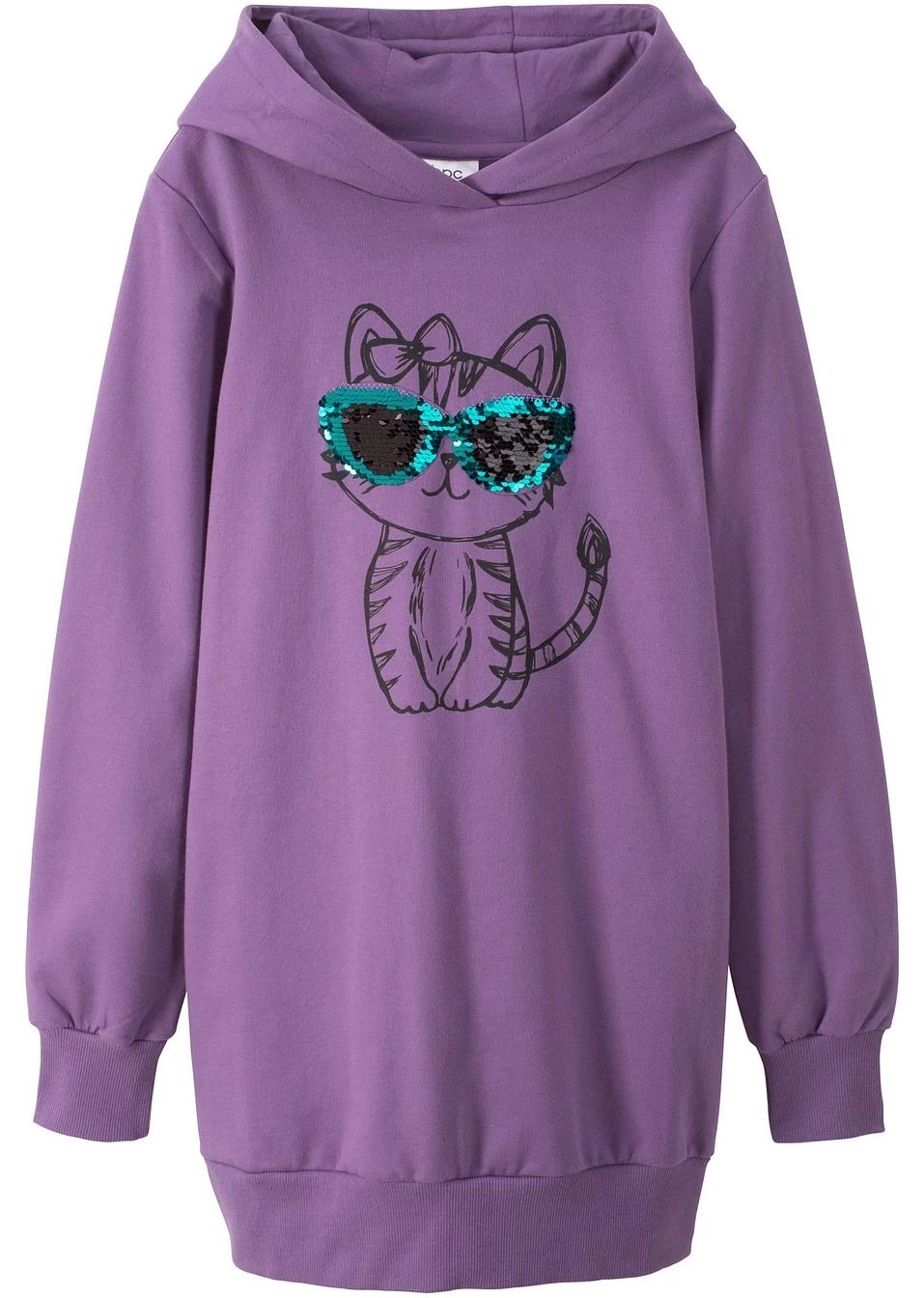 Les paillettes réversibles sont l’atout mode de cette robe sweat-shirt pour fille. Les paillettes affichent deux motifs différents au gré de vos envies. Passez votre main dans un sens ou dans l’autre pour changer la couleur des lunettes de soleil. Avec capuche doublée décorative.