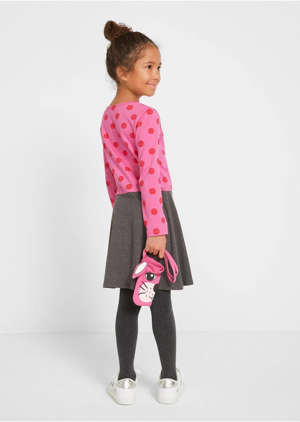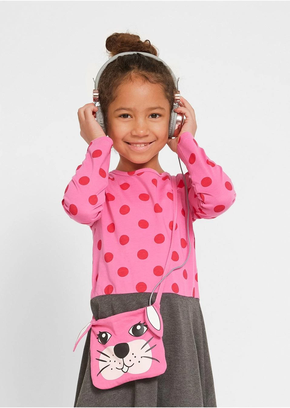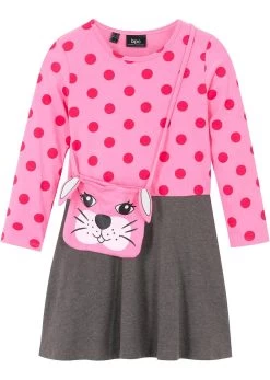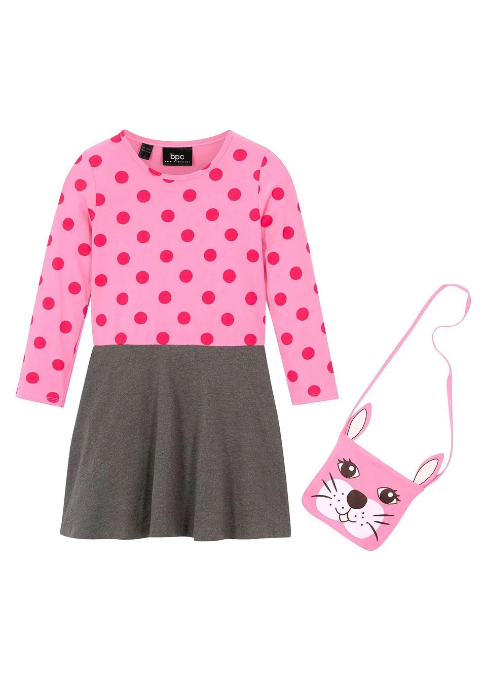Cette adorable robe à pois sur le haut est une pièce phare de la garde-robe des petites filles à la mode. Le petit sac en forme de tête de lapin complète le look. En matière coton douce et agréable à porter.