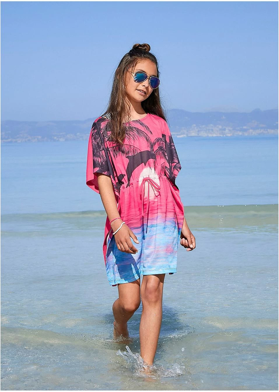 Tunique pour fille avec coutures d’épaules en biais, pour la plage ou de nombreuses autres occasions. En matière douce fluide, imprimé sympa et forme très décontractée – à la fois pratique et chic.