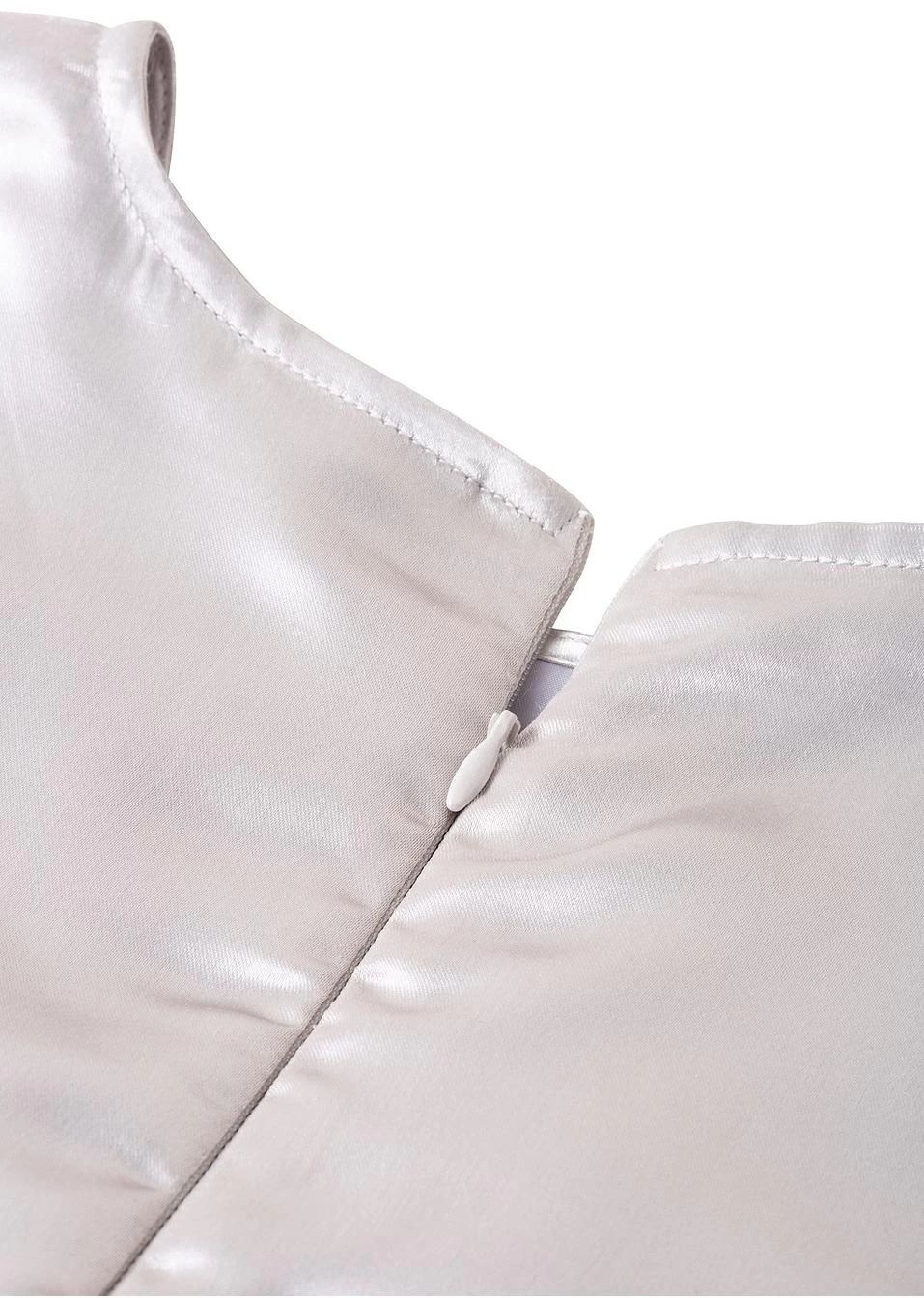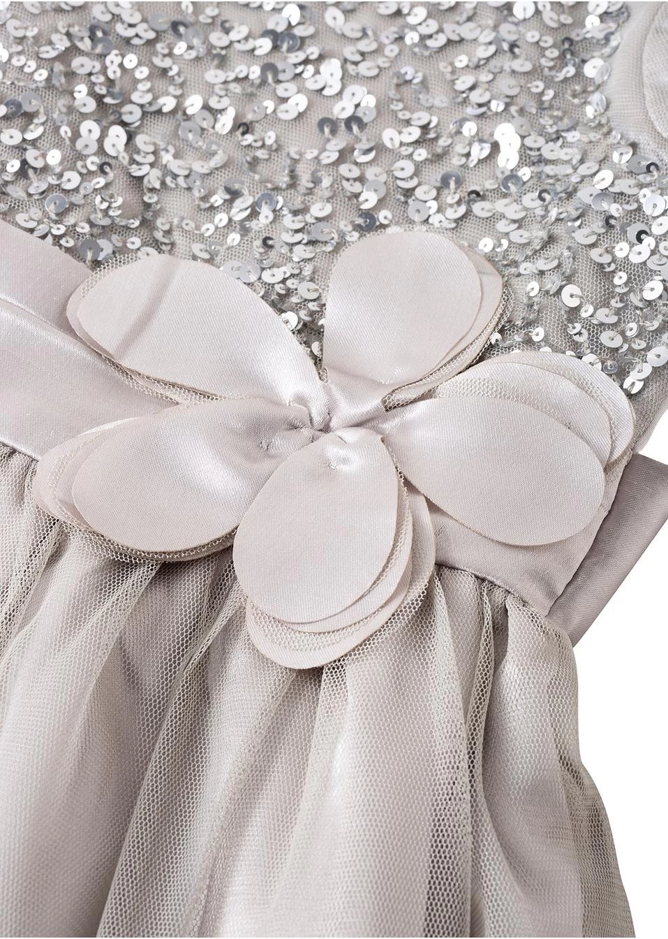 Ravissante robe avec ruban en satin et grande application. Cette robe sera la tenue parfaite pour les occasions spĂ©ciales. Partie jupe Ă©vasĂ©e en multiples Ă©paisseurs et lĂ©gĂšrement plissĂ©e. Large ruban en satin Ă la taille Ă nouer dans le dos et rehaussĂ© d’une jolie application fleur.