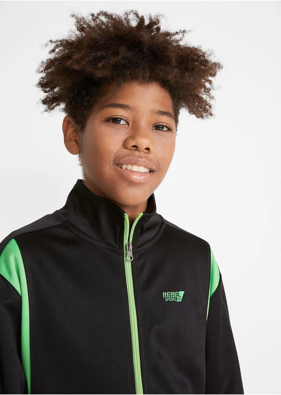 Survêtement 2 pièces pour enfant au look sportif avec touches de couleur verte. Coupe très confortable.
