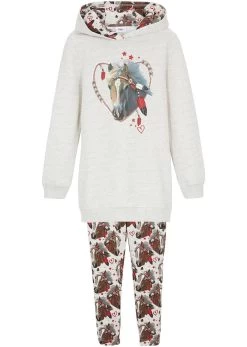 Superbe ensemble composé d’un sweat-shirt à capuche et d’un legging à motif cheval.