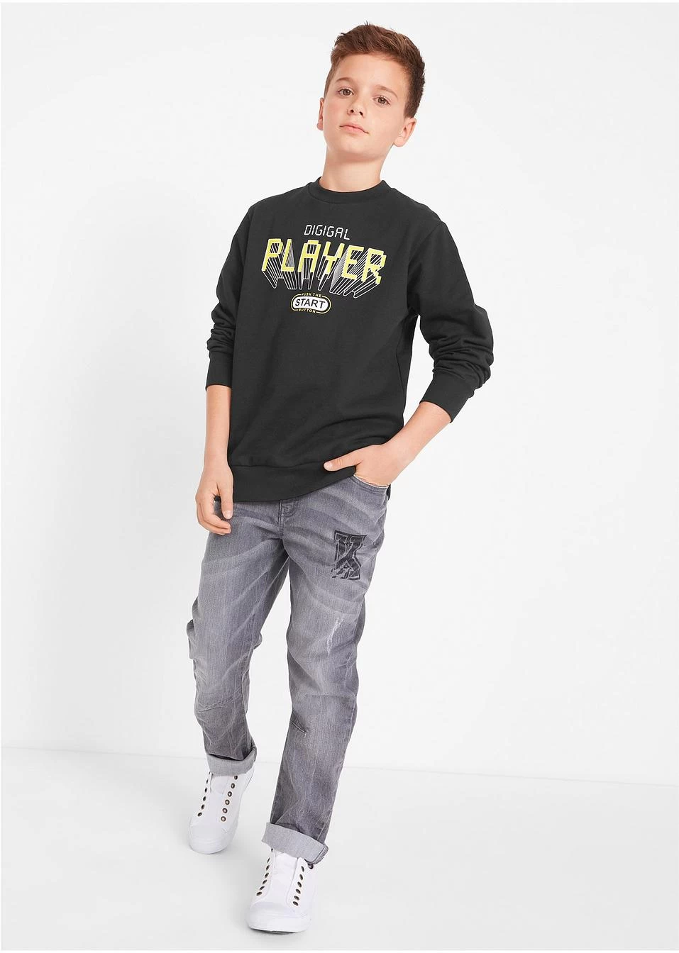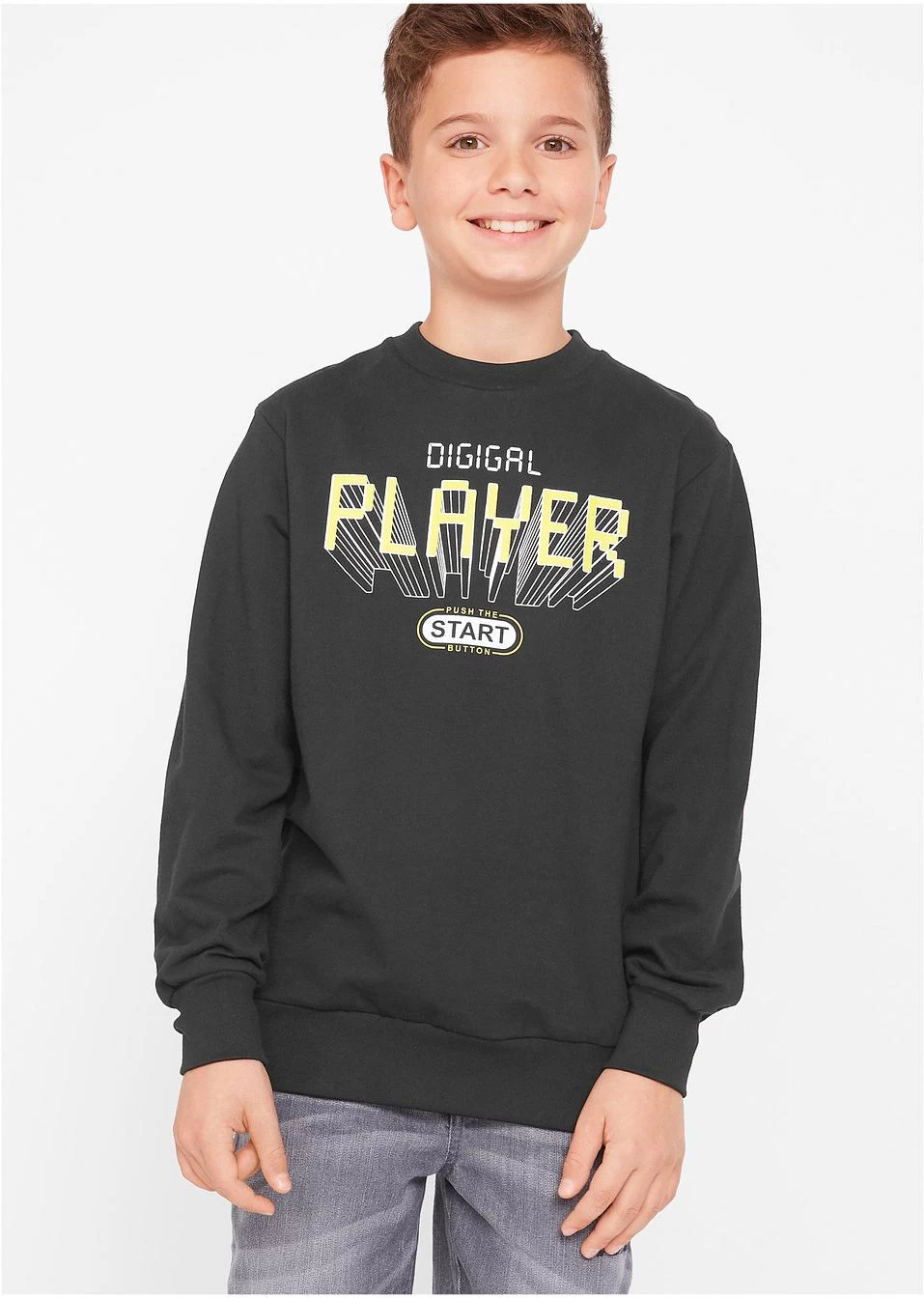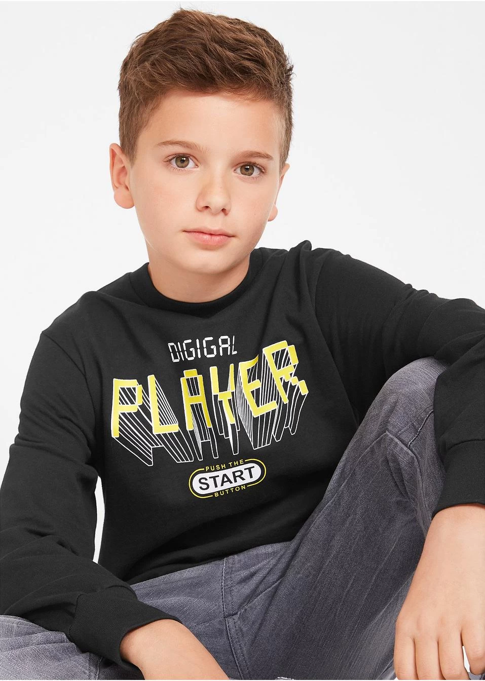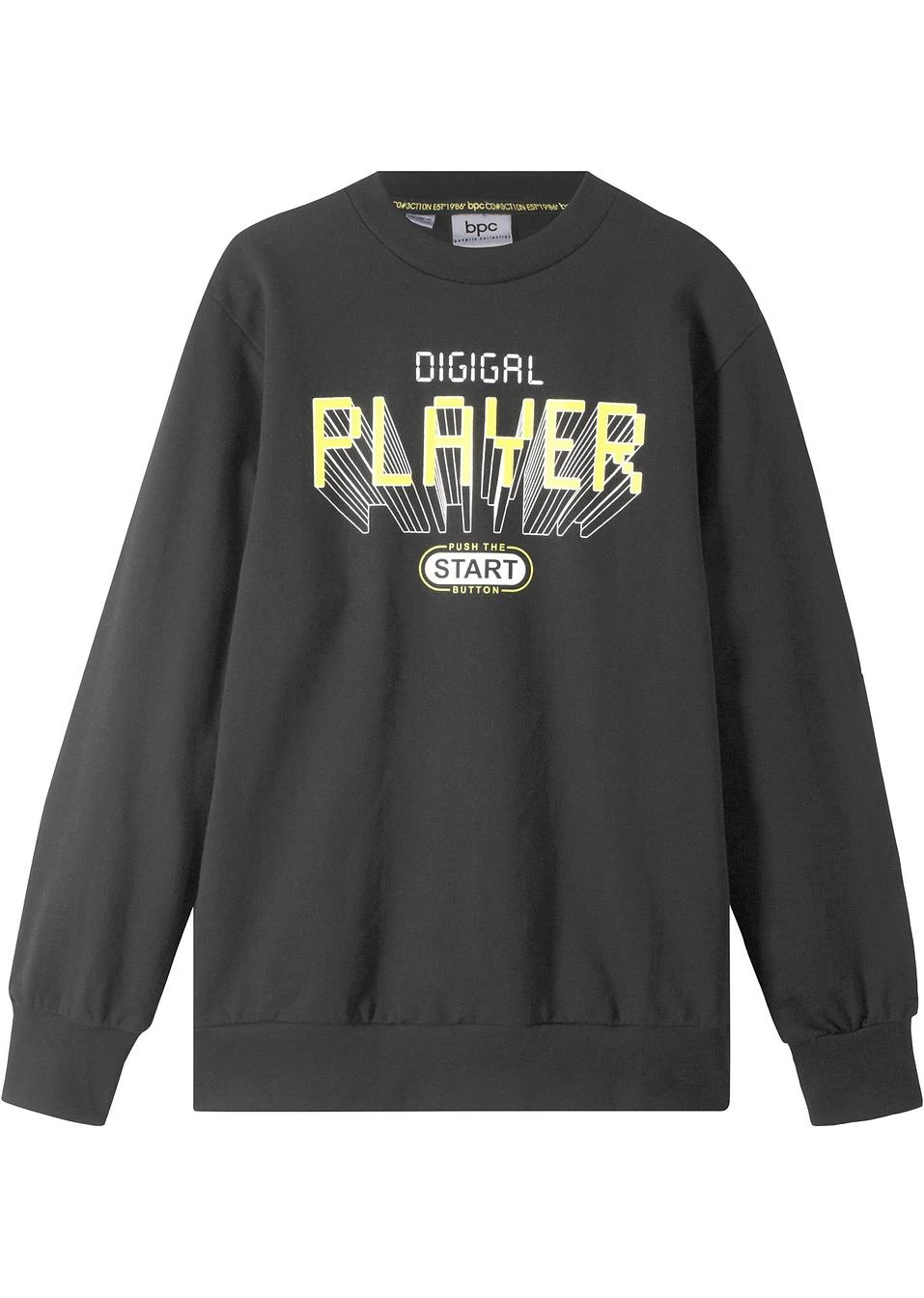 Sweat-shirt confortable avec col rond et manches longues. Le maxi imprimé avec différentes typos sur le devant lui donne un look remarquable. Finitions élastiques à la base et en bas de manches pour un bon ajustement.