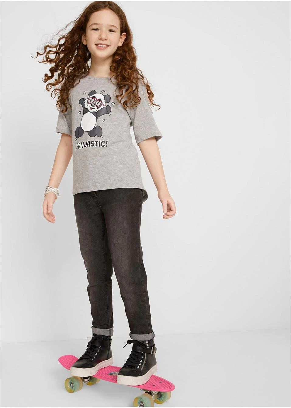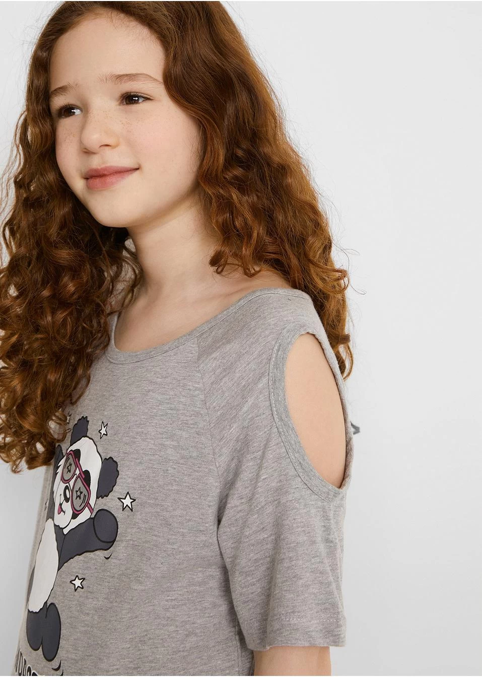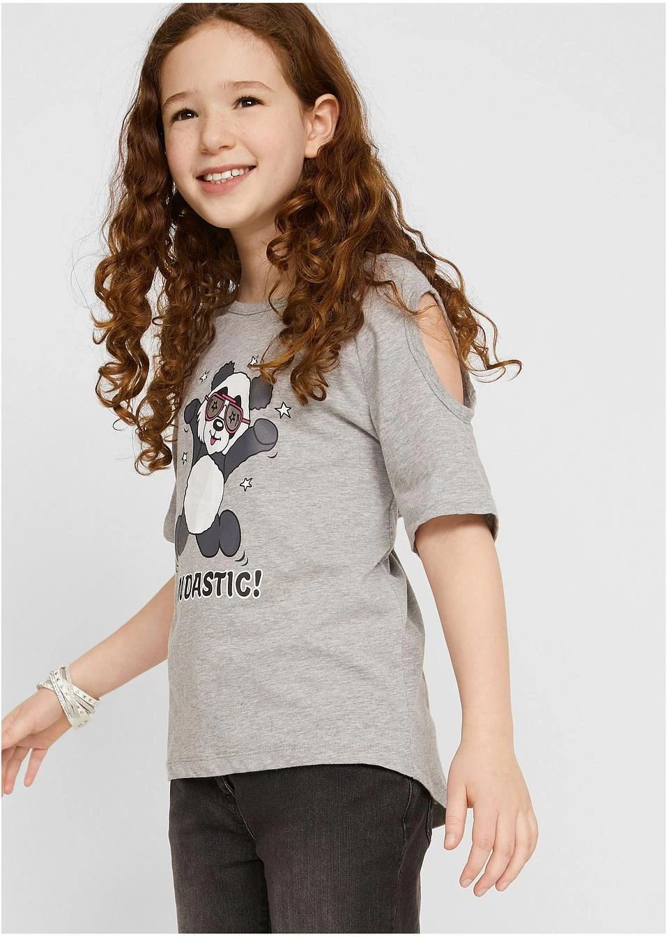 Adorable T-shirt avec motif panda et découpes mode sur les épaules. La coupe plus longue au dos est un détail mode supplémentaire.