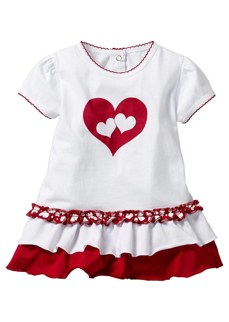 Imprimé petits cœurs ravissant ! T-shirt avec bordure et volants fantaisie, patte de boutons-pression dans la nuque. Legging imprimé all-over avec taille élastiquée.