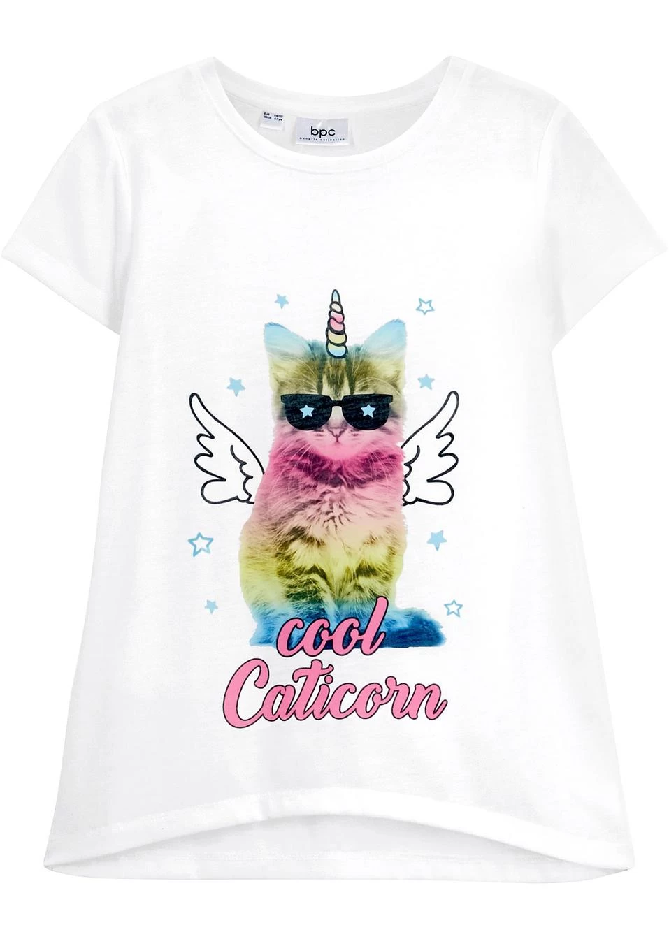 T-shirt cool pour fille à imprimé chat multicolore. Un T-shirt qui ne passe pas inaperçu. Coupe décontractée pour un ajustement confortable.