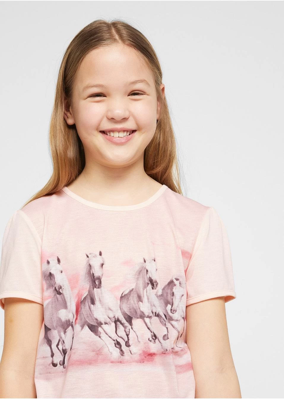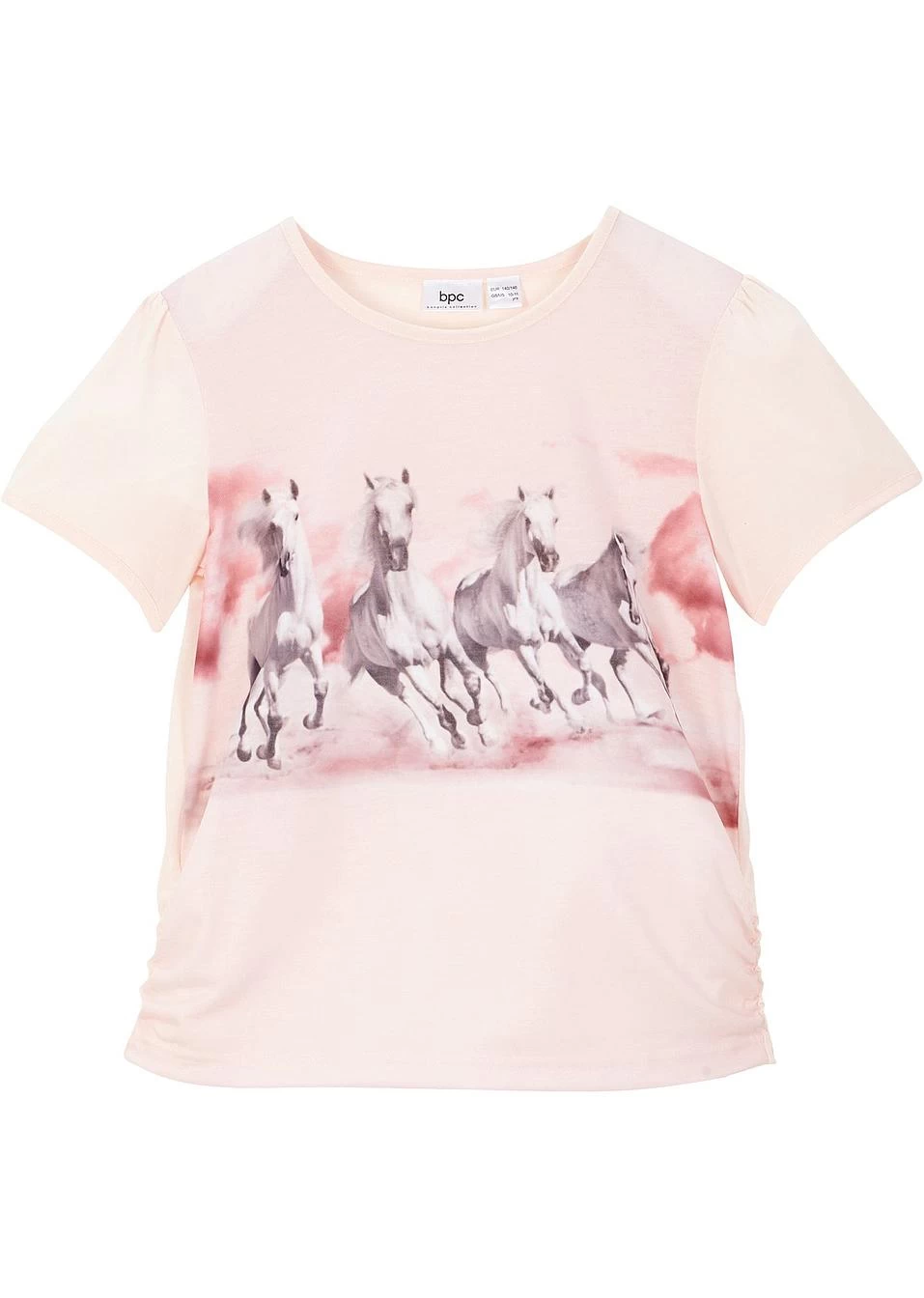 Ce très joli T-shirt à manches courtes est agrémenté d’un imprimé cheval sur le devant. Dans deux coloris et motifs au choix.