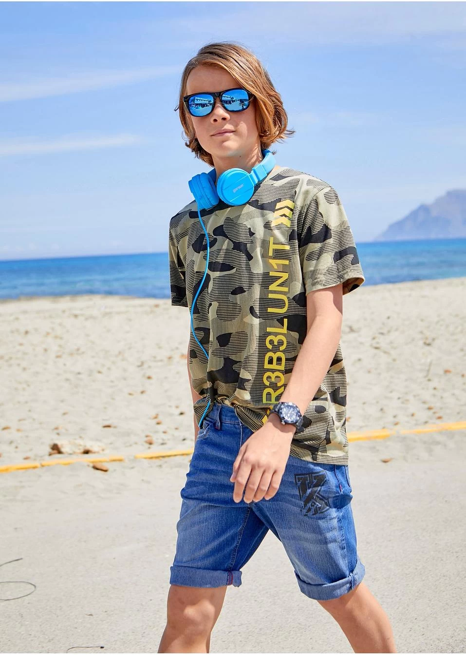 T-shirt cool avec col rond, motif camouflage attractif et imprimés tendance. À combiner avec un pantalon en sweat ou un jean et des baskets pour un look super cool.