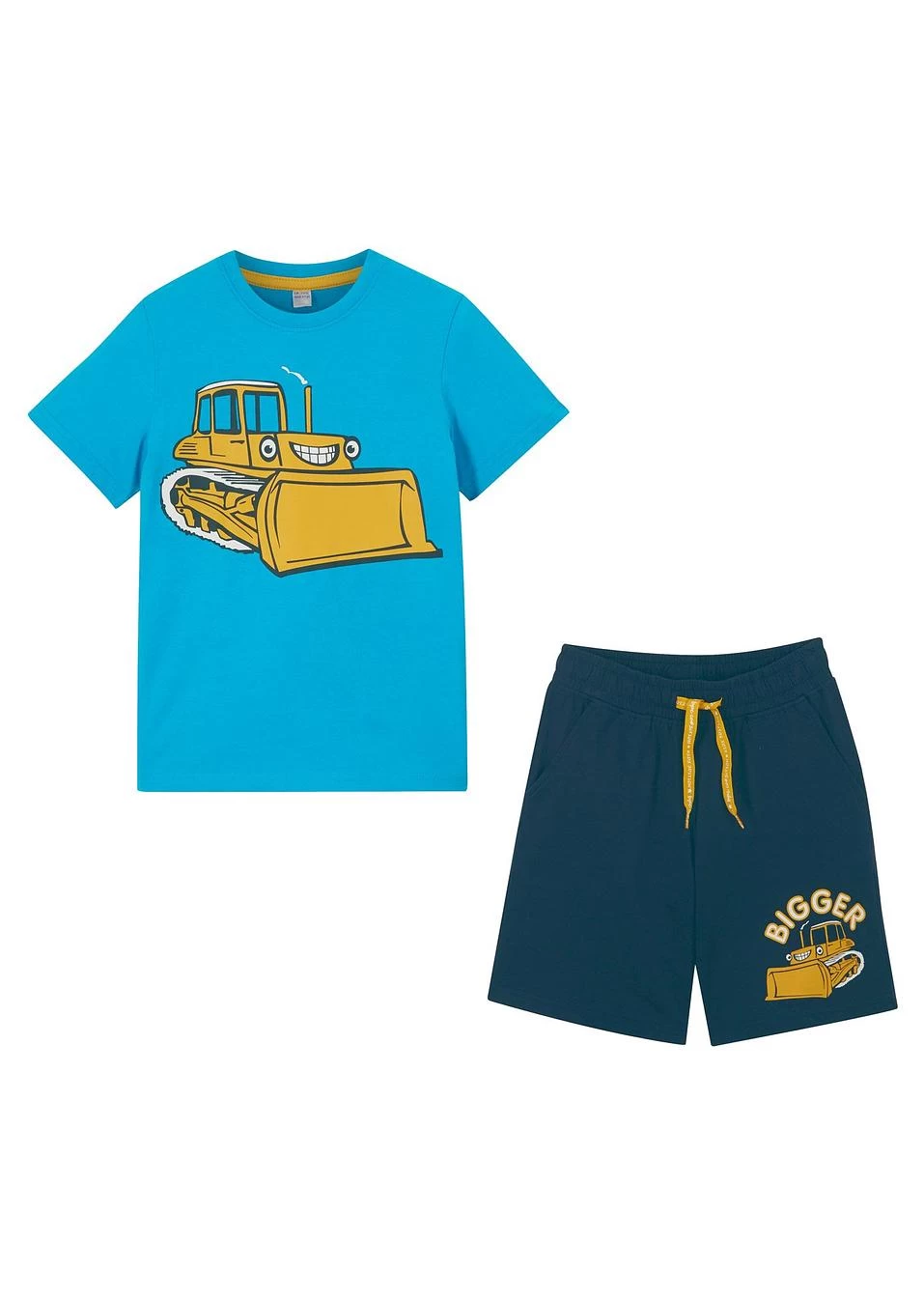 T-shirt et bermuda avec imprimé pelle mécanique (Ens. 2 pces.)