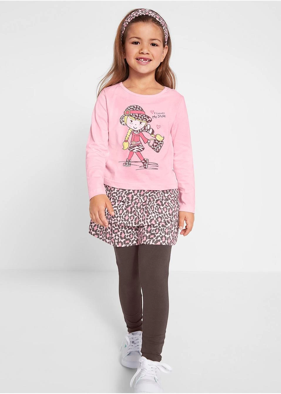 Ensemble 4 pièces composé d’un T-shirt, d’une jupe, d’un legging et d’un bandeau de cheveux. Jupe et bandeau de cheveux à motif identique. Le T-shirt et le legging assortis complètent cette jolie tenue pour tous les jours.