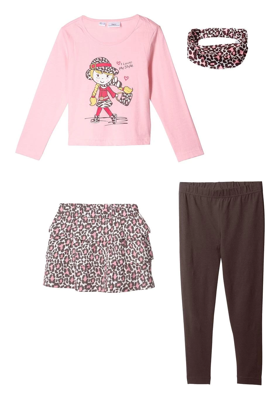 T-shirt, jupe, legging, bandeau fille (Ens. 4 pces.)
