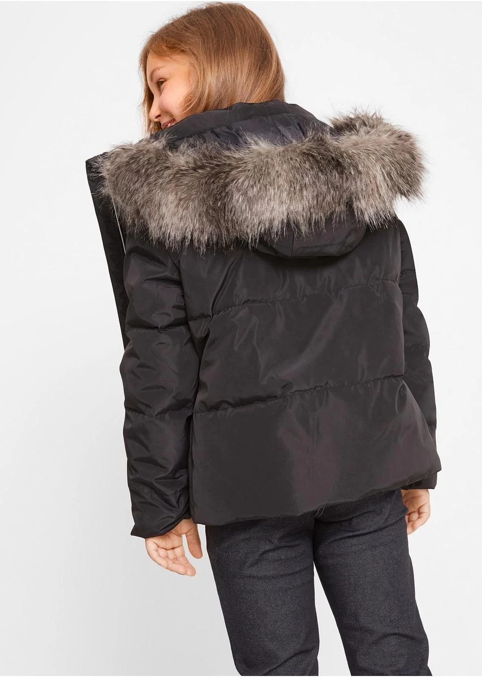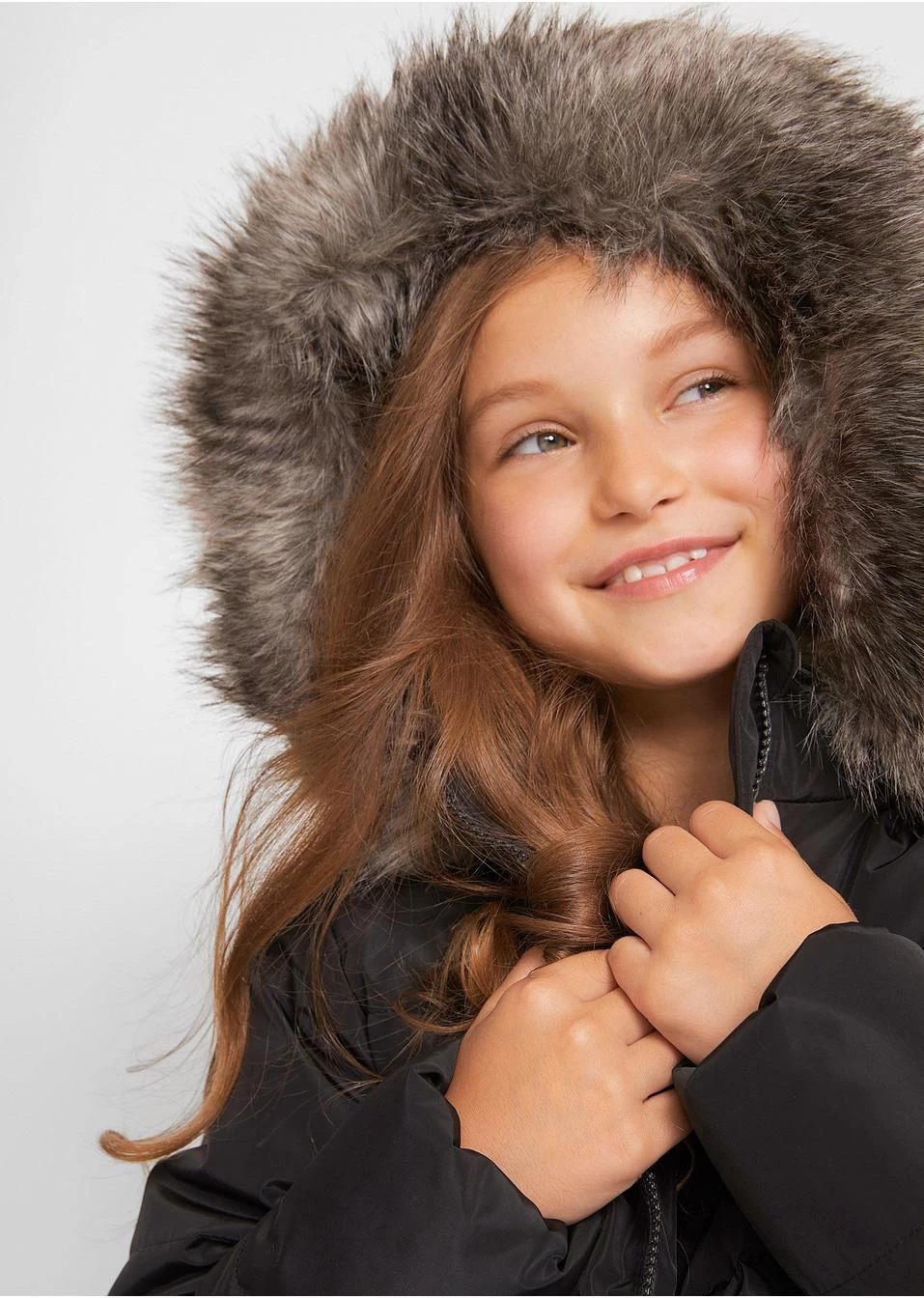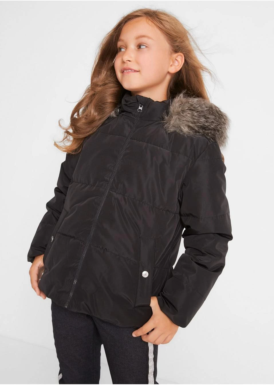 Veste matelassée chaude pour fille, idéale pour les jours de froid ! Capuche bordée de synthétique imitation fourrure douillette amovible, fermeture zippée et deux poches pressionnées.