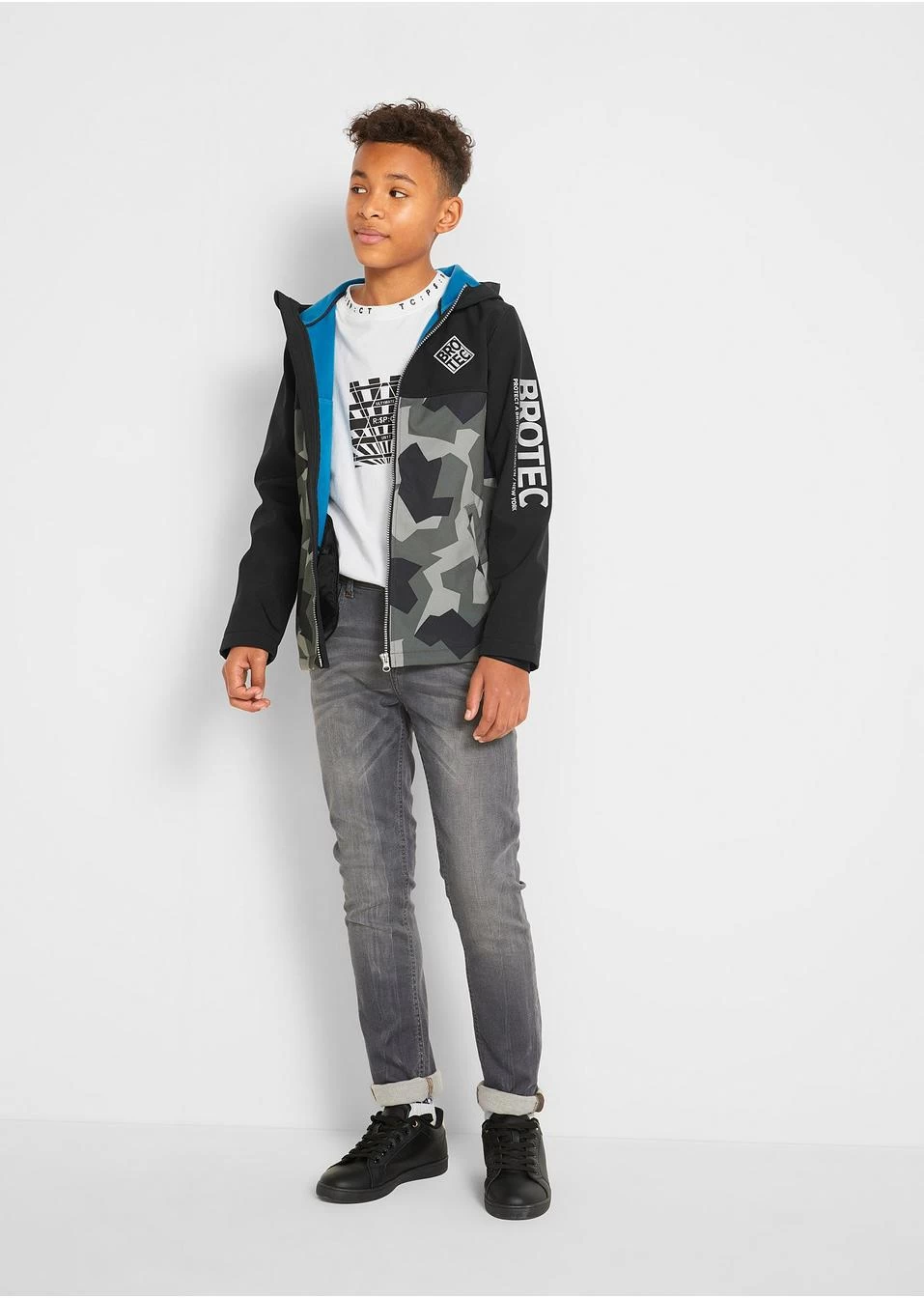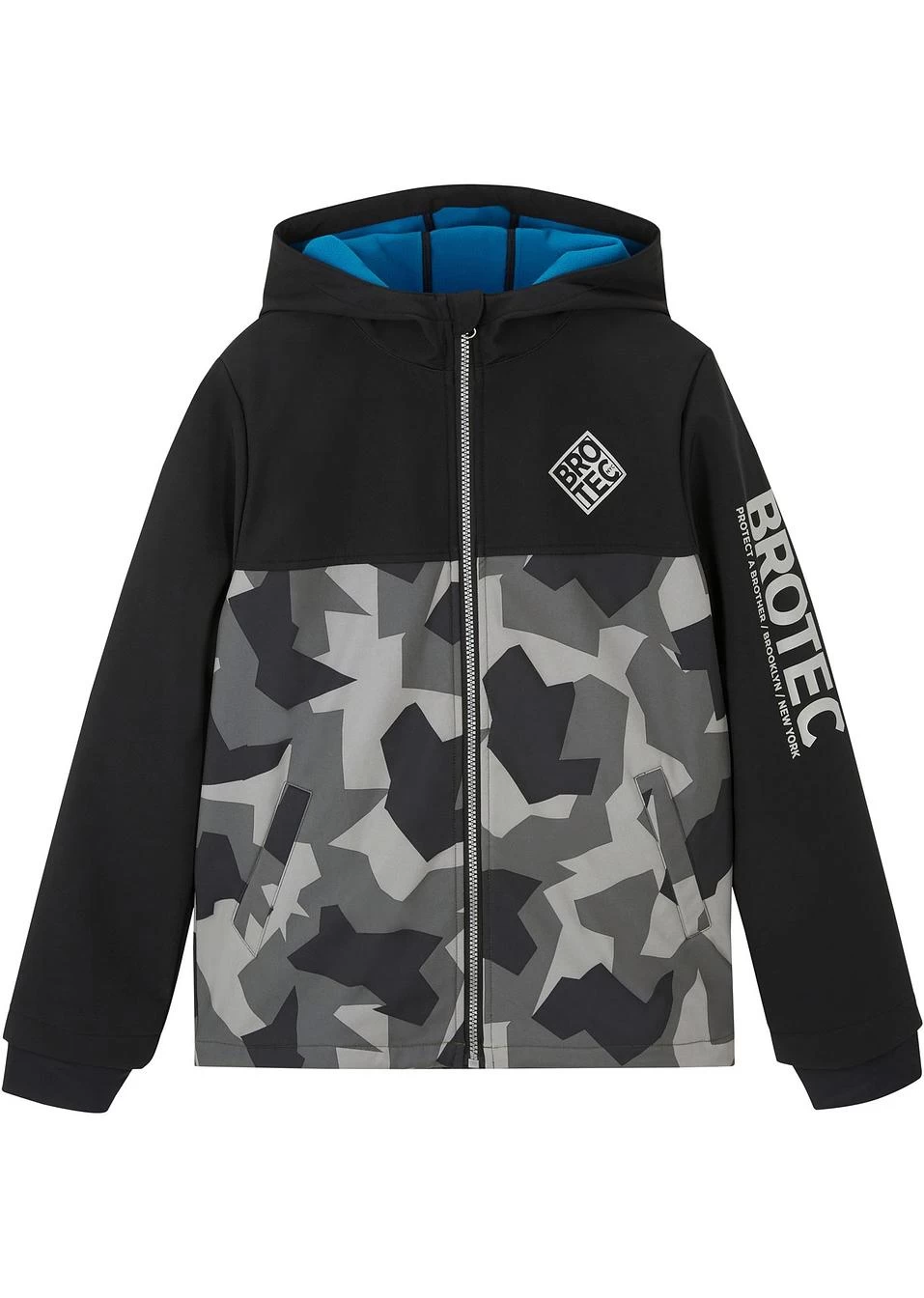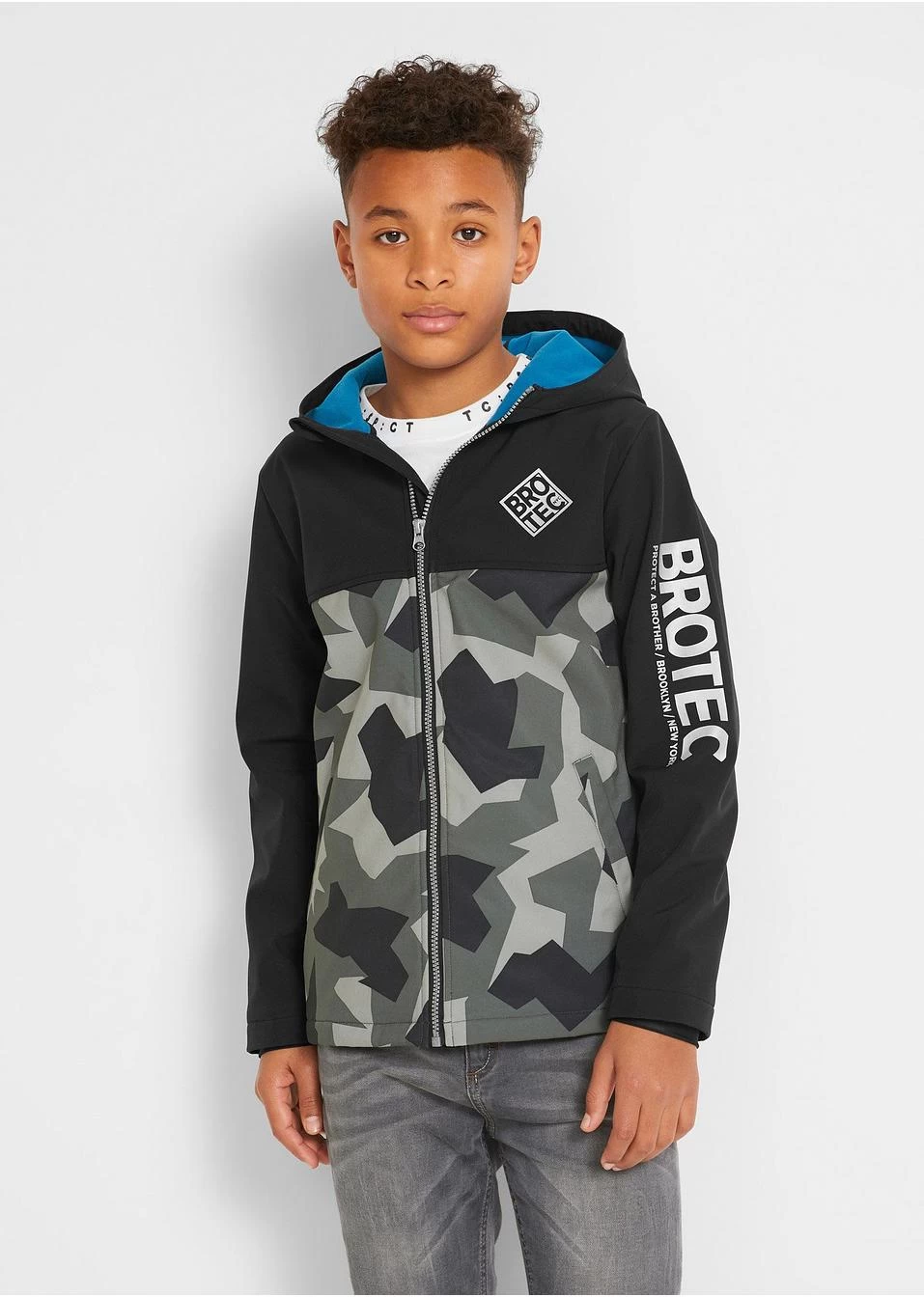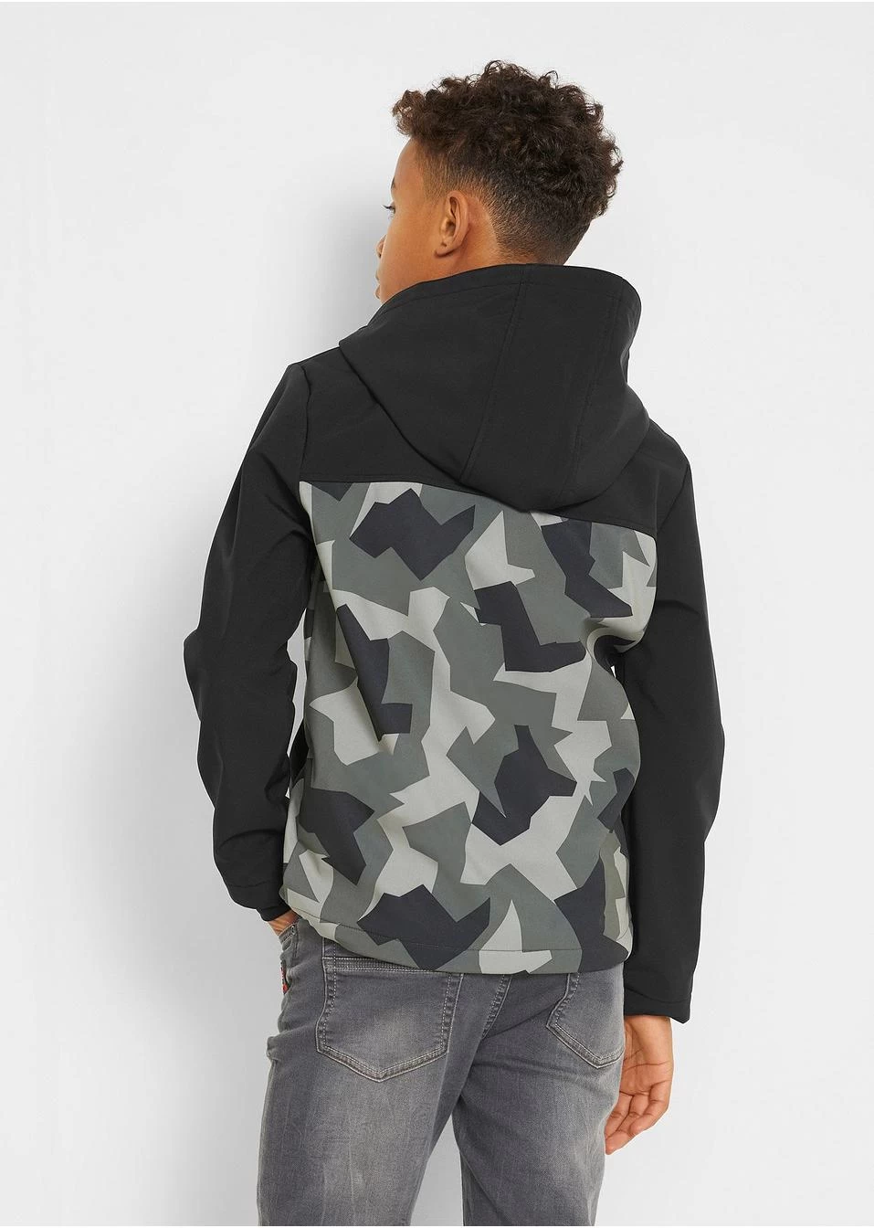 Cette veste mode avec un imprimé camouflage et réfléchissant est un must pour tous les garçons cool ! Cette veste softshell est parfaitement adaptée pour les loisirs et le sport. Capuche, ampleur réglable à la base et poches latérales pour un grand confort.